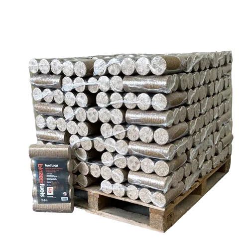 Each pallet contains a set number of sealed fuel log packs. The compressed wood fibers ignite quickly and maintain a stable burn, generating intense, steady heat with very little smoke.
